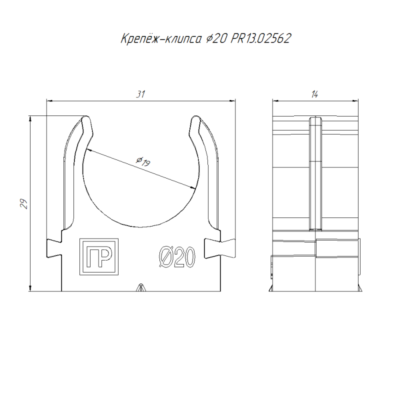 Держатель для труб (клипса) d20мм для прямого монтажа бел. в п/э Промрукав PR13.02562
