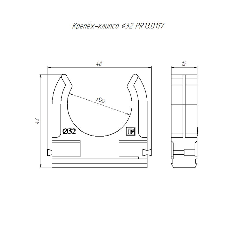 Держатель для труб (клипса) d32мм АБС-пластик син. (в малой упак.) (уп.10шт) Промрукав PR13.0117
