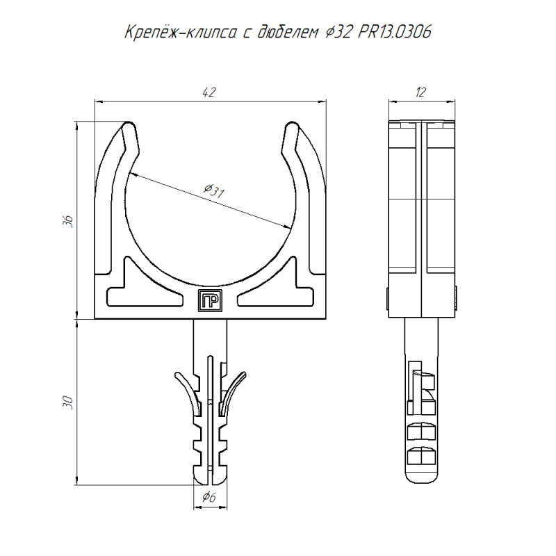 Крепеж-клипса с дюбелем в малой упаковке d32мм черн. (уп.10шт) Промрукав PR13.0306