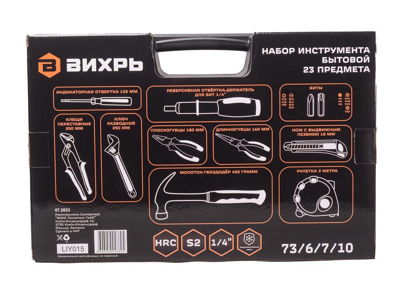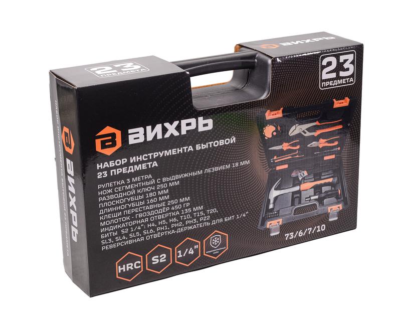Набор инструмента бытовой в кейсе 23 предмета Вихрь 73/6/7/10