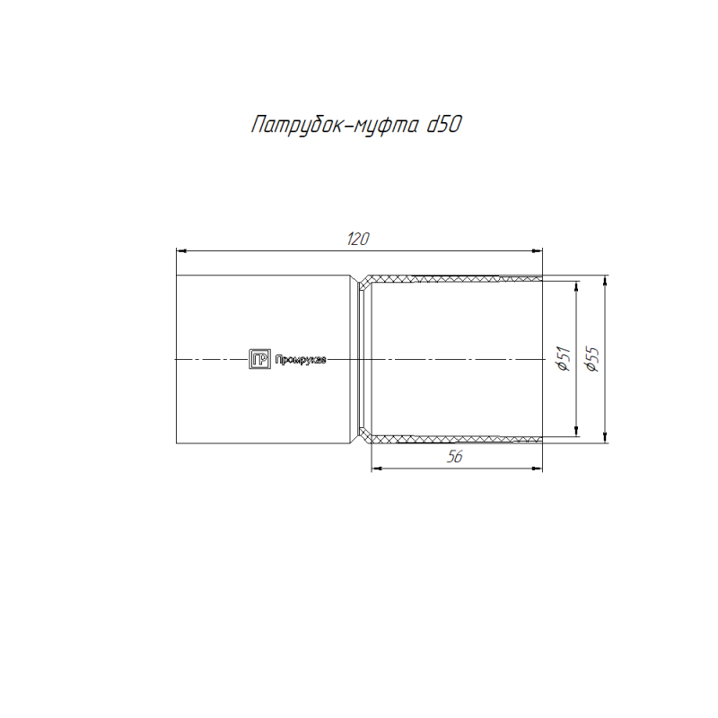 Патрубок-муфта d50мм черн. Промрукав PR13.0186