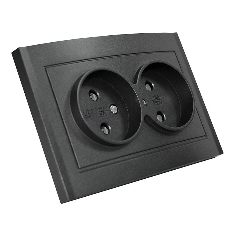 Розетка 2-м СП Бриллиант 16А IP20 без заземл. в сборе графит Universal 7947519-Gr