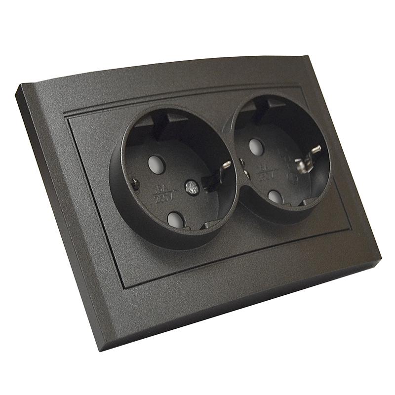 Розетка 2-м СП Бриллиант 16А IP20 с заземл. защ. шторки в сборе графит Universal 7947540-Gr