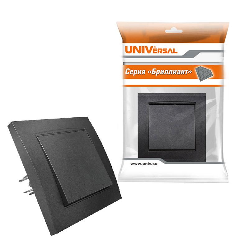 Выключатель 1-кл. СП Бриллиант 10А IP20 в сборе графит Universal 7947366-Gr