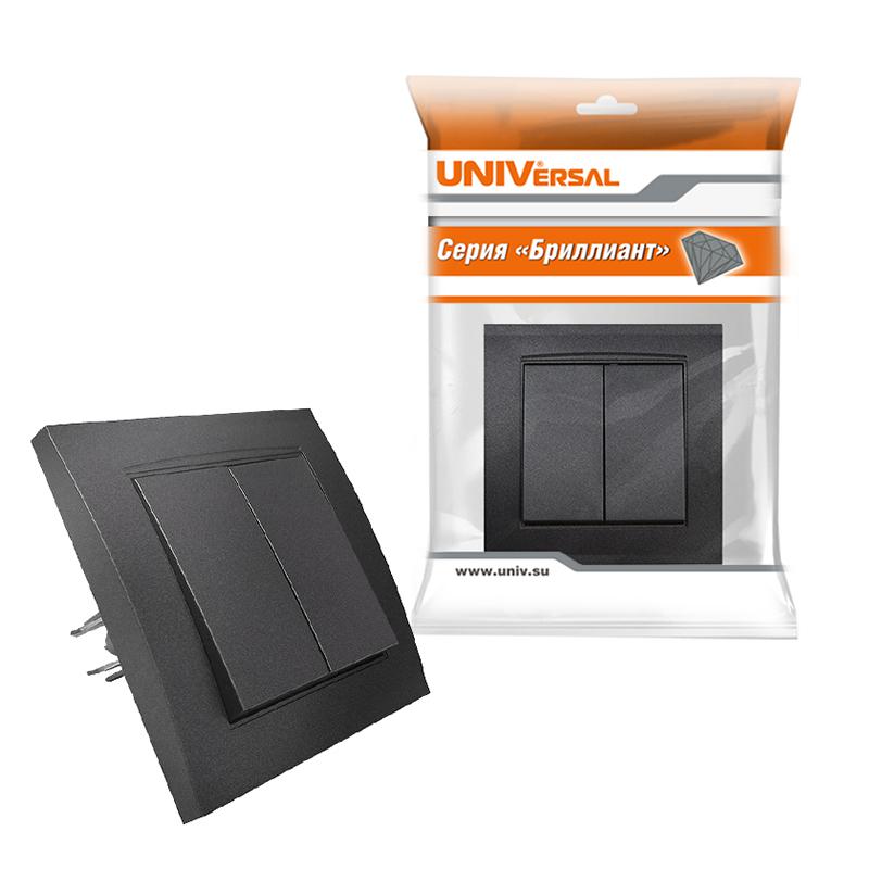 Выключатель 2-кл. СП Бриллиант 10А IP20 в сборе графит Universal 7947403-Gr
