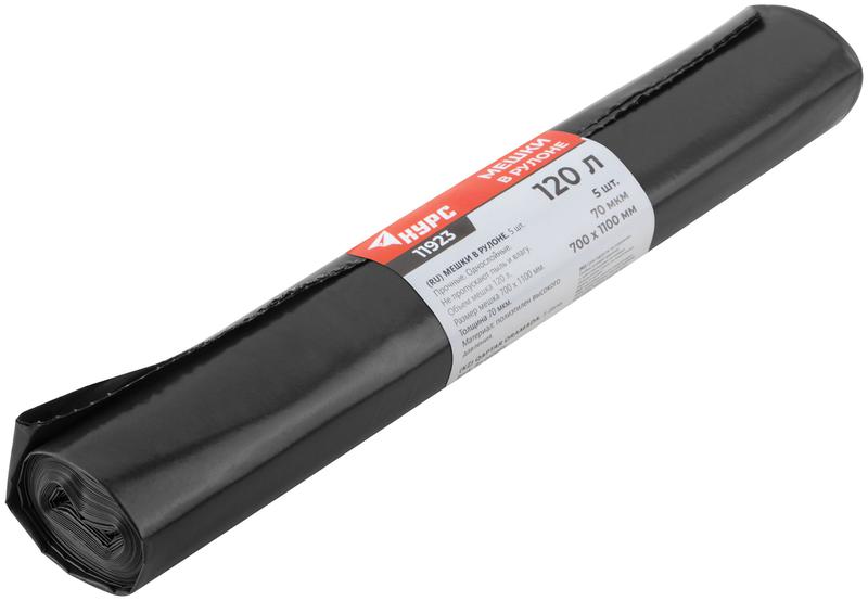 Мешок для строительного мусора ПВД прочные 120л 700х1100мм толщина 70мкм (уп.5шт) КУРС 11923