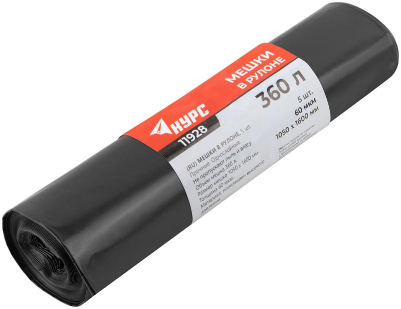 Мешок для строительного мусора ПВД прочные 360л 1050х1600мм толщина 60мкм (уп.5шт) КУРС 11928