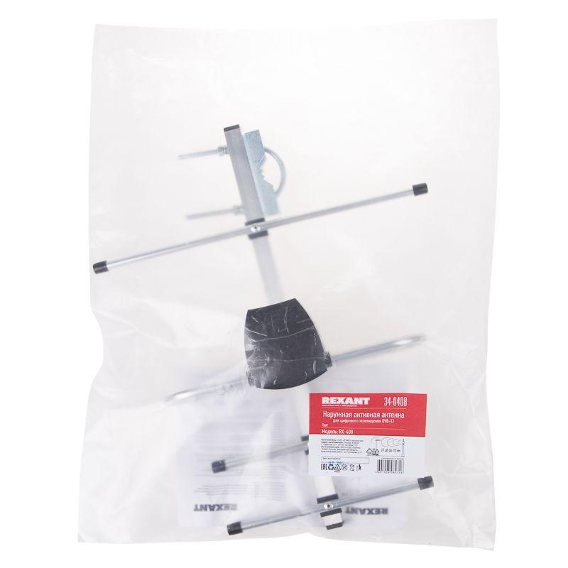 Антенна ТВ наружная "АКТИВНАЯ" для аналогового и цифрового ТВ - DVB-T2 (модель RX-408) (пакет) Rexant 34-0408