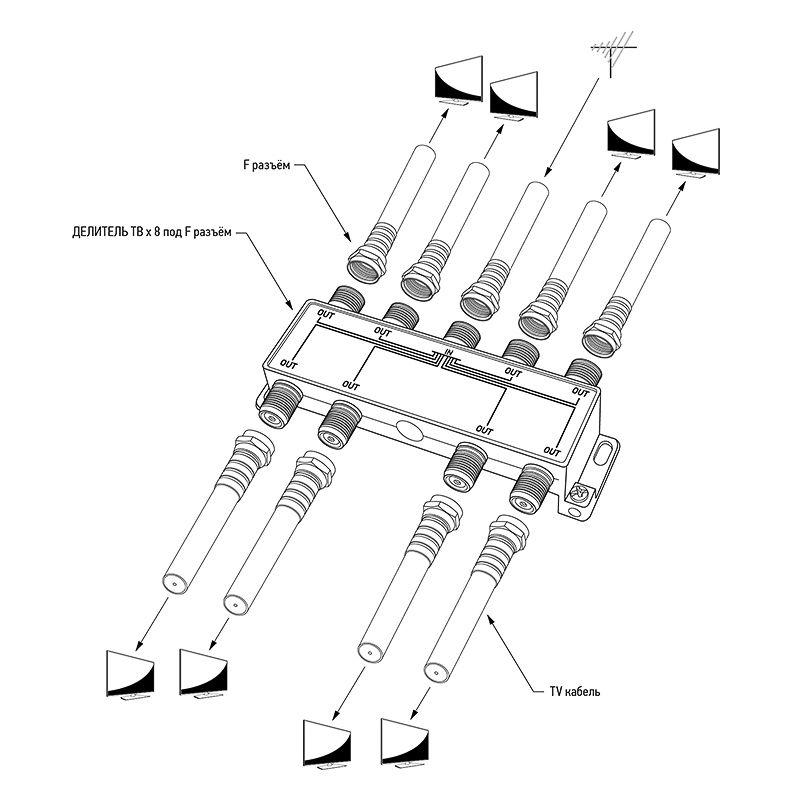 Делитель ТВх8 под F разъем 5-1000 МГц PROCONNECT 05-6025