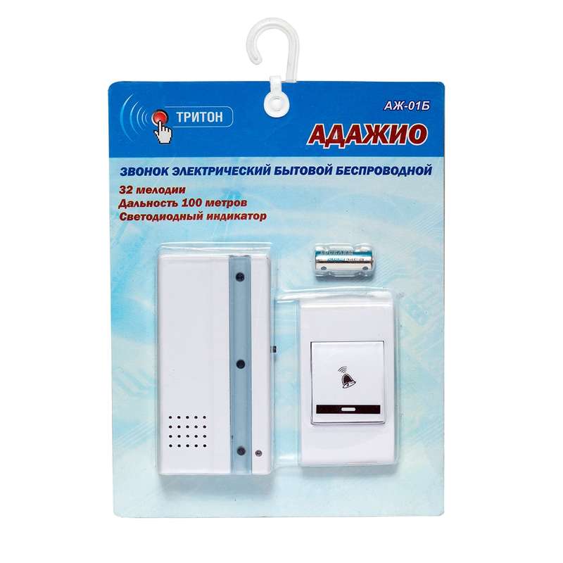 Звонок беспроводной Адажио 32 мел. 100м 2АААх1.5В Тритон АЖ-01Б