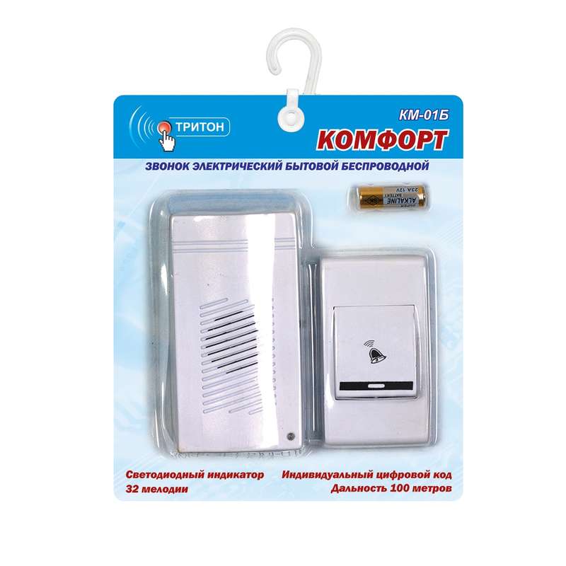 Звонок беспроводной Комфорт 32 мел. 100м 2АААх1.5В Тритон КМ-01Б