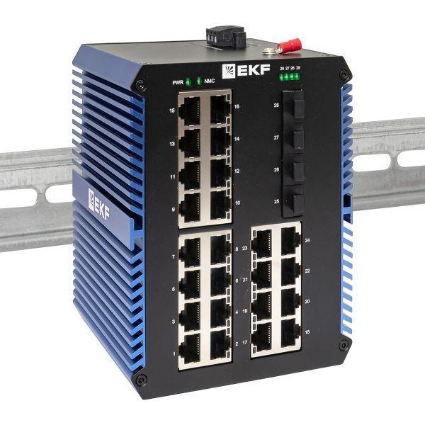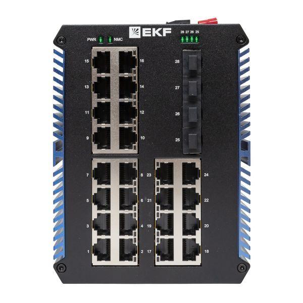 Коммутатор неуправляемый промышленный U-4GX/SFP-24GTP 4 порта 1000Base-X SFP 24 порта 10/100/1000Base-T(X) RJ45 c PoE монтаж на DIN-рейку TSX EKF TSX-U-4GX/SFP-24GTP
