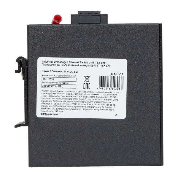 Коммутатор неуправляемый промышленный U-5T 5 портов 10/100Base-T(X) RJ45 монтаж на DIN-рейку TSX EKF TSX-U-5T