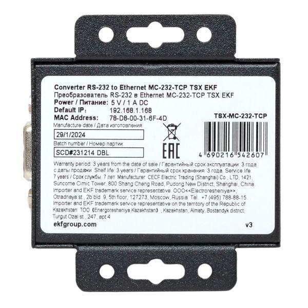 Преобразователь 1-портовый RS-232 в Ethernet MC-232-TCP TSX EKF TSX-MC-232-TCP