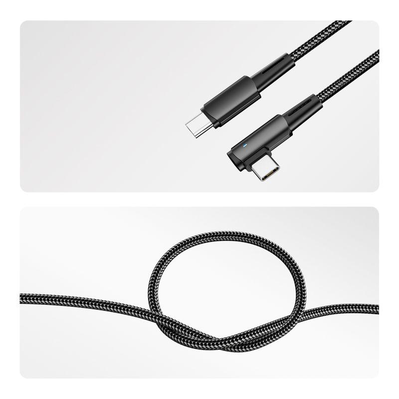 Кабель Type-C-Type-C 5А 100Вт 1м черн. нейлон. оплетка с угловым штекером и световой индикацией Rexant 18-7070