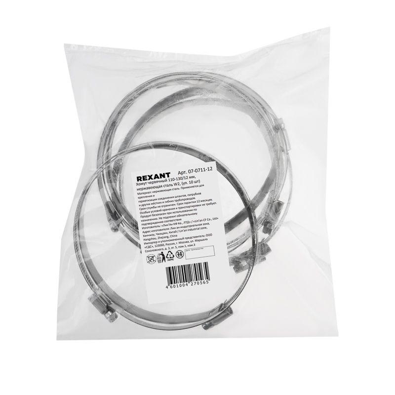 Хомут червячный 110-130/12-0.8мм нержавеющая сталь W2 Rexant 07-0711-12