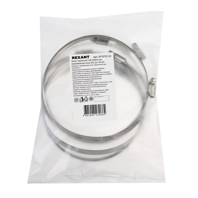 Хомут червячный 120-140/12-0.8мм нержавеющая сталь W2 Rexant 07-0712-12
