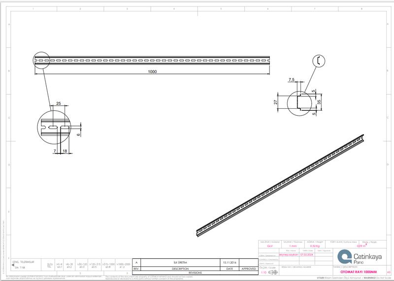 DIN-рейка перфорированная 35х7.5мм L1000 оцинк.Cetinkaya Pano CP4983