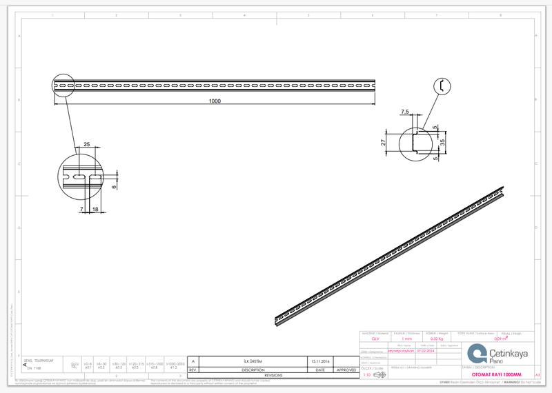 DIN-рейка перфорированная 35х7.5мм L2000 оцинк. Cetinkaya Pano CP4984