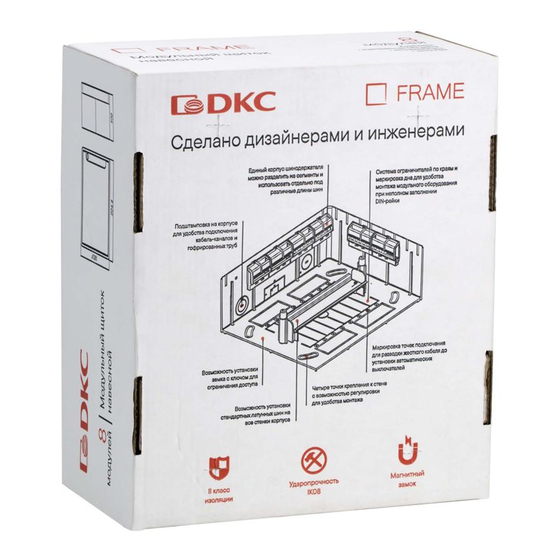 Щиток 8 мод. настенный FRAME с тонированной дверцей с 2 шинами PEN на 6 и 8 отв. бел. DKC F08W1WD
