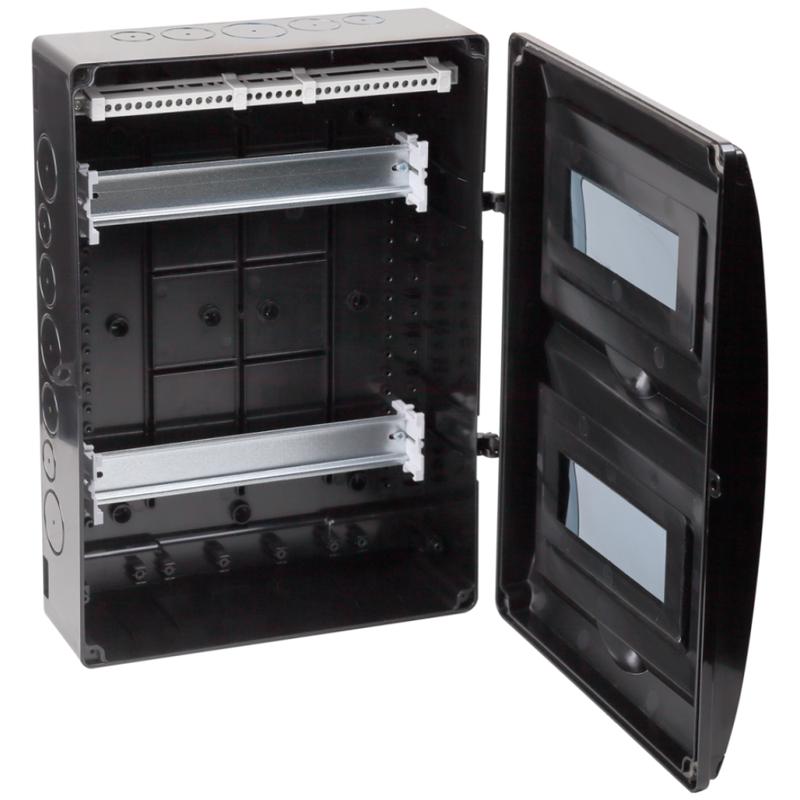 Щиток отркрытая проводка на 20 модулей с 2 вертик.дверцами 390х302х120мм черный IP65 УХЛ1 Ruvinil 69020Ч
