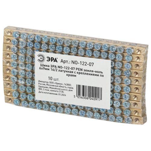 Шина NO-122-07 PEN "земля-ноль" 6х9мм 16/2 с креплениями по краям латунь ЭРА Б0047221