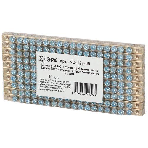 Шина NO-122-08 PEN земля-ноль 6х9мм 18/2 латунная с креплениями по краям Эра Б0047222