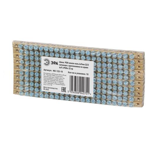 Шина NO-122-10 PEN земля-ноль 6х9мм 22/2 латунная с креплениями по краям Эра Б0047224