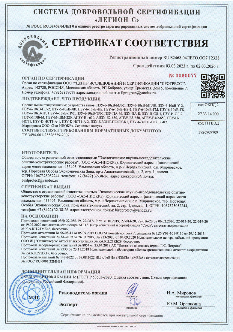 Комплект птицезащитного устройства ПЗУ-6-10кВ-МЛ-2 (КЗ) Эко-НИОКР ЦБ-00002923