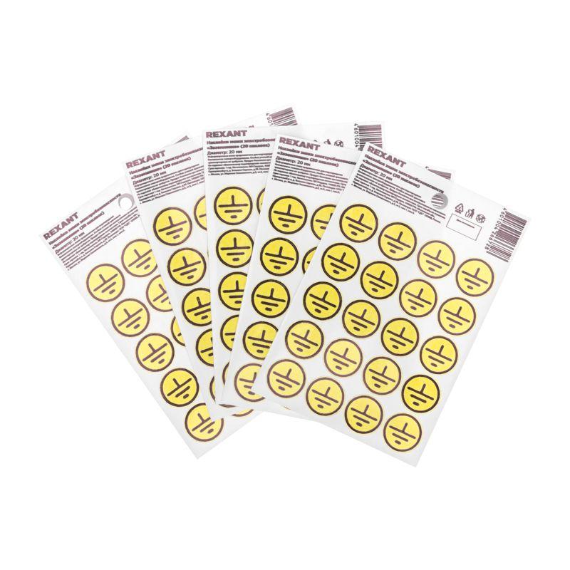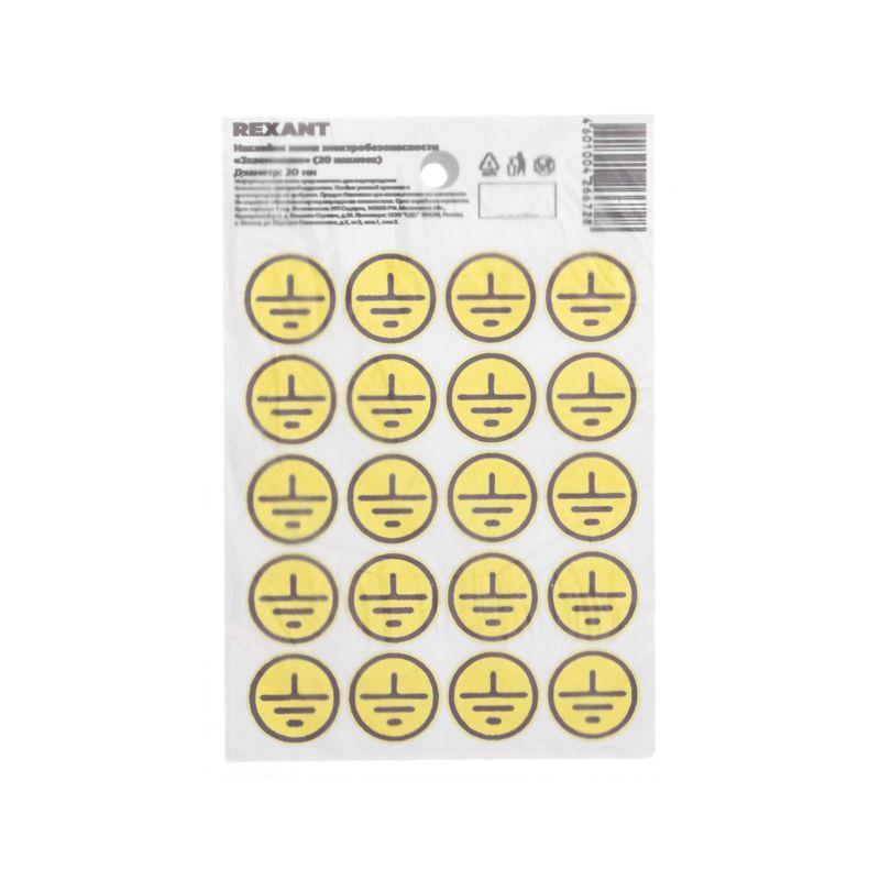 Наклейка знак электробезопасности «Заземление» d20мм (с хедером 20шт на листе) Rexant 56-0010-01